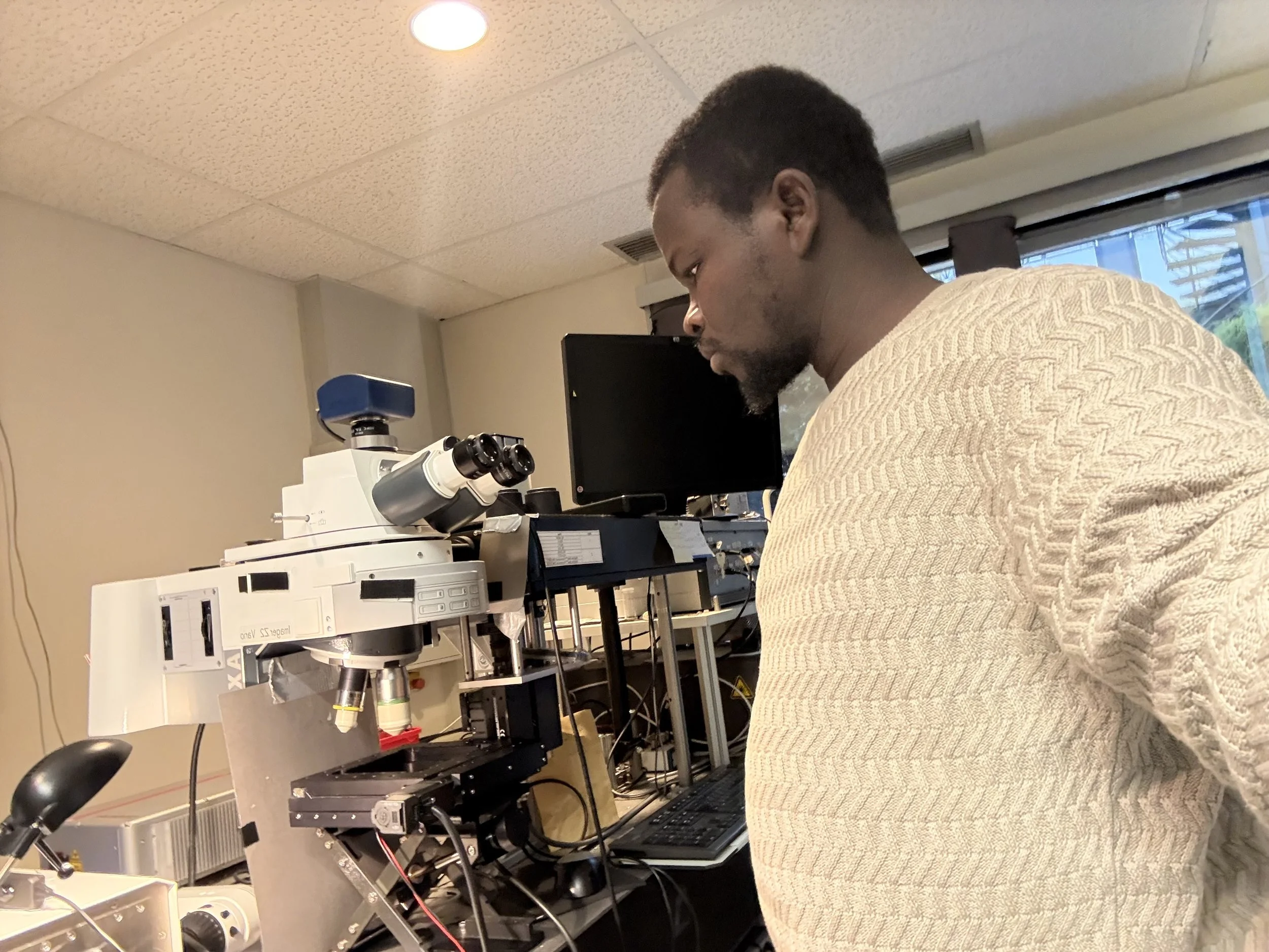 Abdul-Rashid studying real-time visualization of cellular dynamics during freezing.