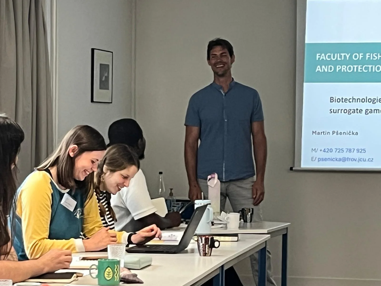 Martin Pšenička from the University of South Bohemia gave a talk about biotechnologies using germinal stem cells for surrogate gamete production in fish species: from the first proofs of concept to practical application.