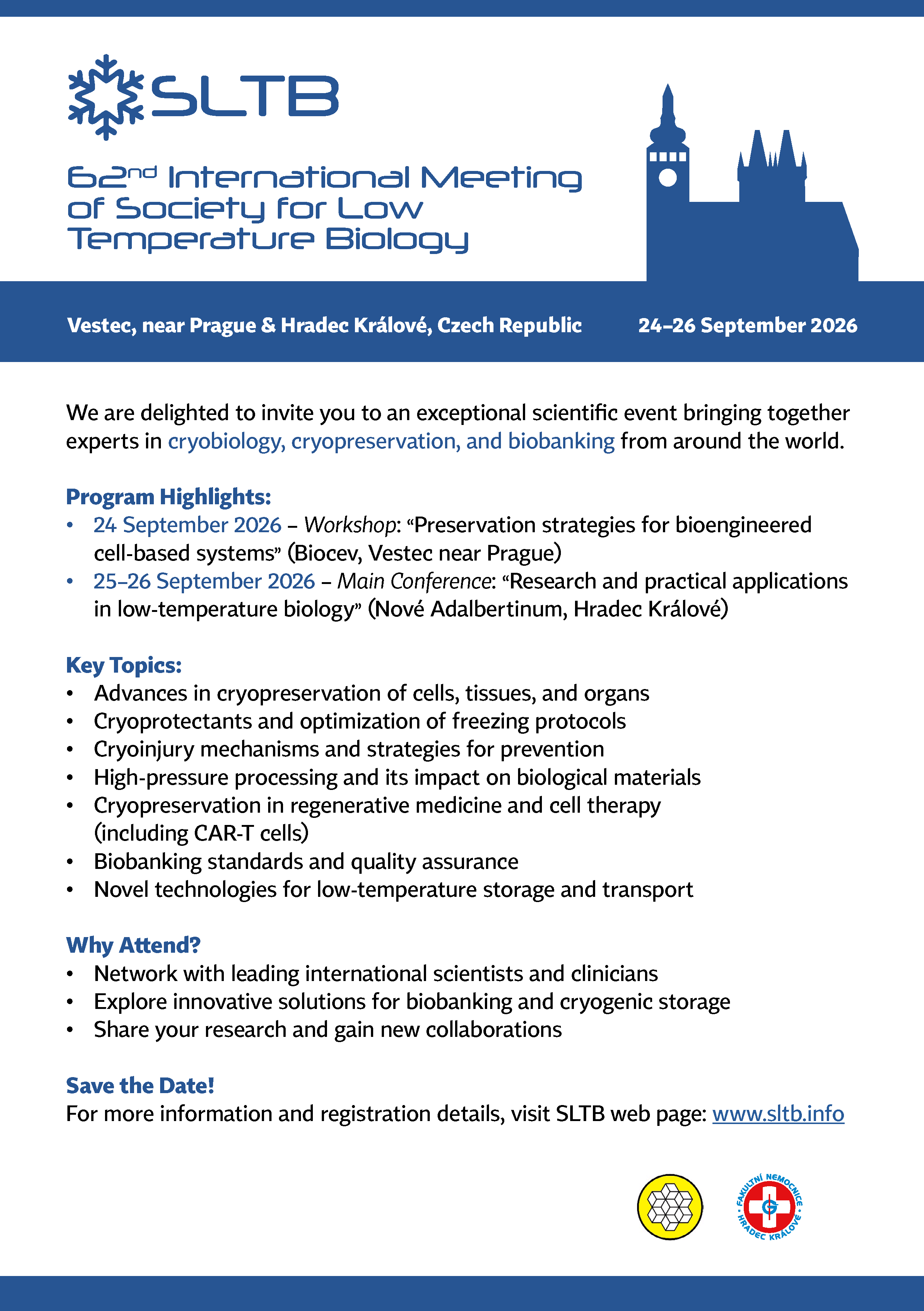 SLTB2026 Jan 13 Written By Silje Modahl Johanson 62nd international meeting of the SOCIETY FOR LOW TEMPERATURE BIOLOGY (SLTB) | 24-26 September, 2026 | Vestec near Prague, Czech Republic Silje Modahl Johanson